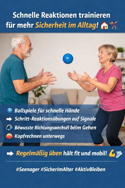 Mit zunehmendem Alter verlangsamt sich die Reaktionsgeschwindigkeit. Gründe dafür liegen unter anderem in altersbedingten Veränderungen des zentralen Nervensystems, wodurch Informationsverarbeitung und Bewegungsplanung mehr Zeit benötigen. Die gute Nachricht: Reaktionsfähigkeit lässt sich trainieren. Wissenschaftliche Studien zeigen, dass sowohl gezieltes Reaktionstraining als auch die Kombination aus körperlichen und kognitiven Übungen zu schnelleren Reaktionen führen können.